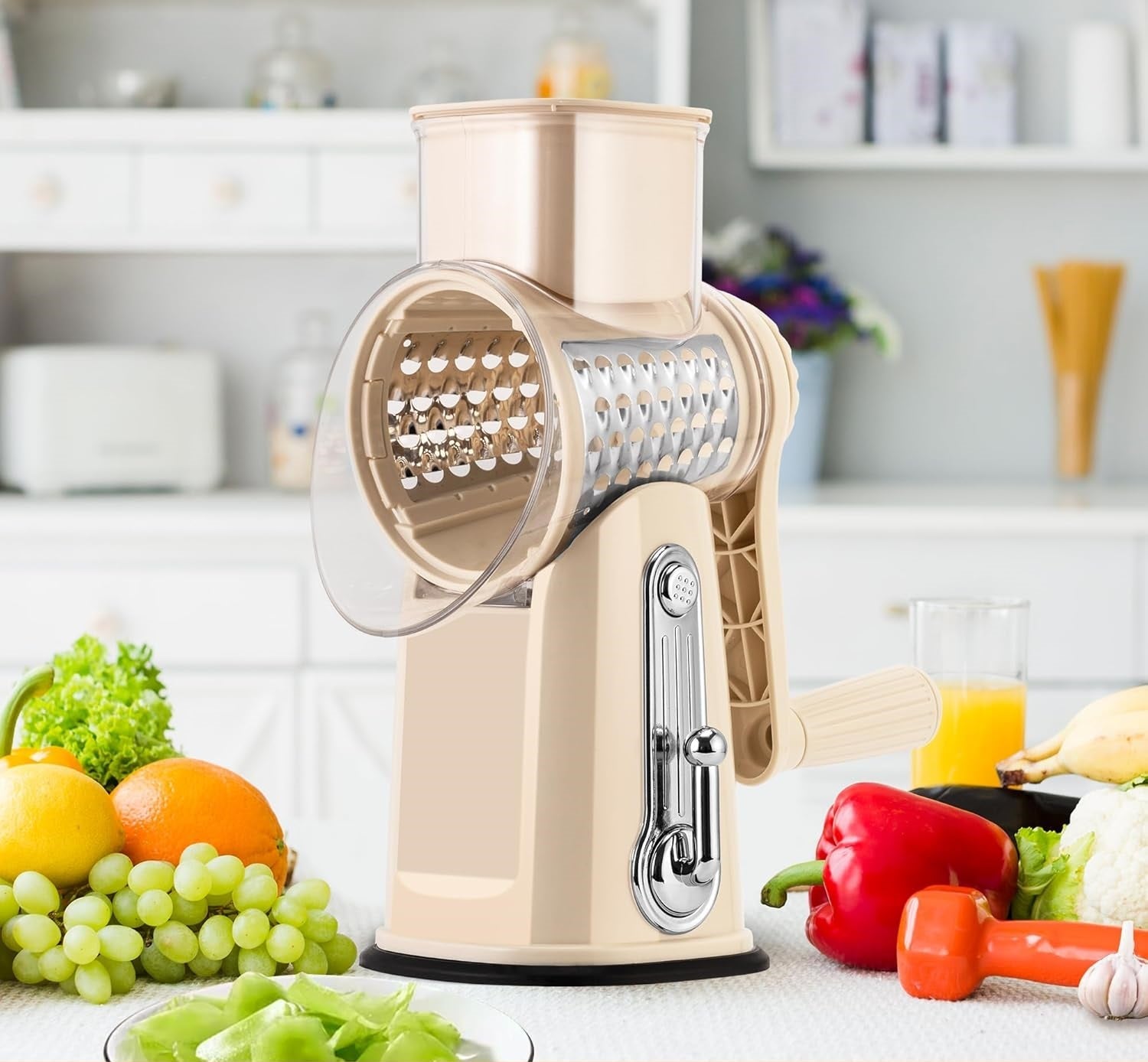 - Beinahe doppelt so große Einfüllöffnung: Kein Vorschneiden mehr notwendig. Gib einfach ganze Kartoffeln, Zwiebeln, Paprika oder Äpfel in den Multischneider.