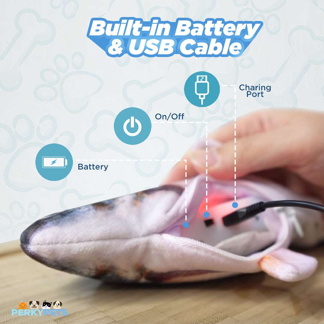 Lieferumfang: 1 Stück "Floppy Fish" elektronisch betriebenes Hundespielzeug.