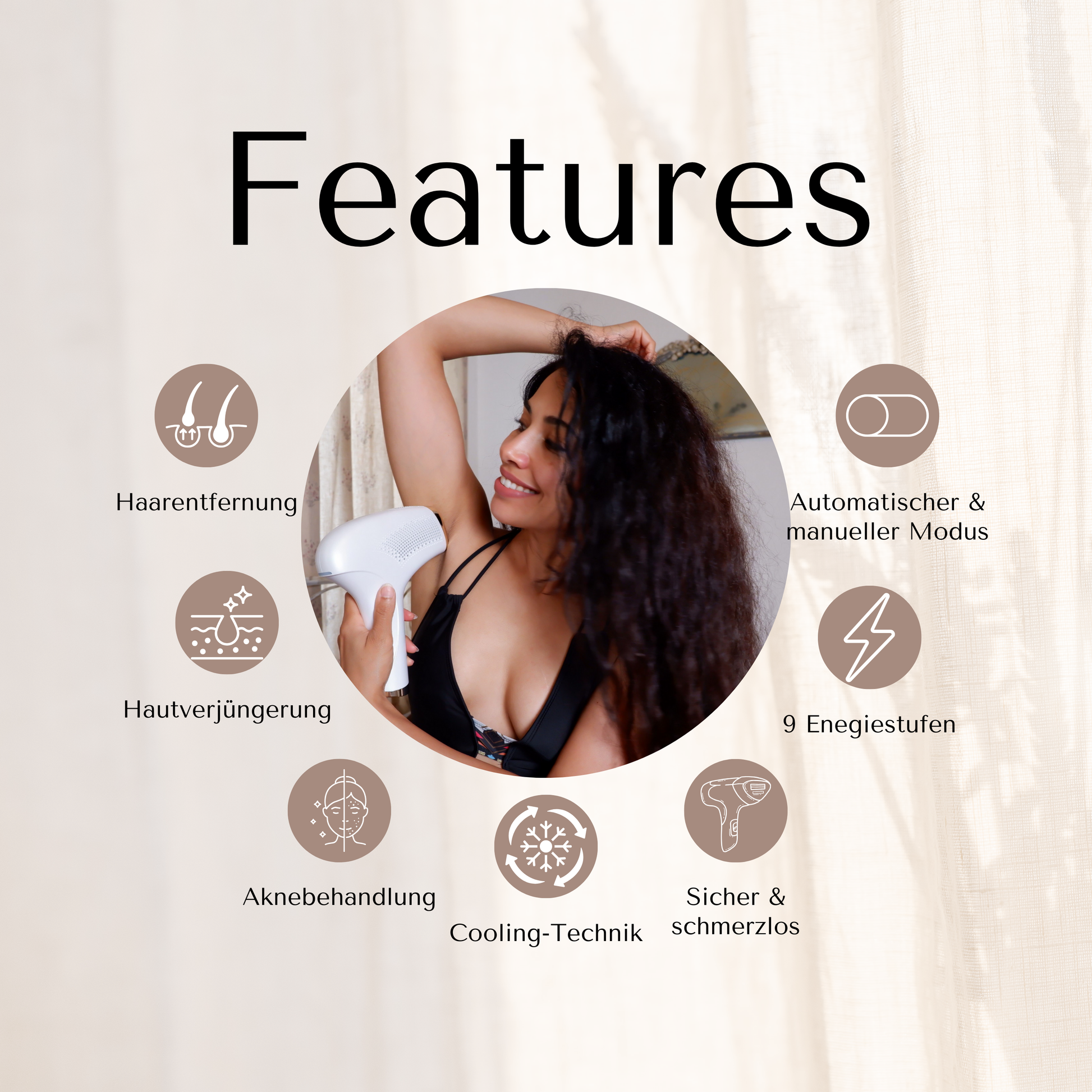 - Schmerzlose und hocheffektive PrecisionPulse™ IPL Technologie.